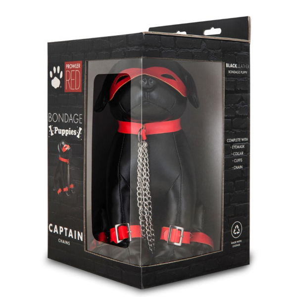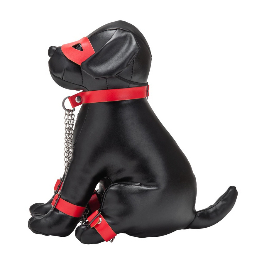 Dieser BDSM-DOG ist ein origineller, süßer und Hund aus Kunstleder, der BDSM-Ausrüstung in rot trägt.
